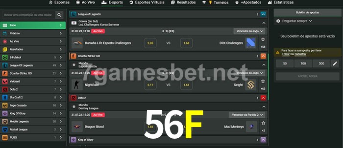 O 56F oferece uma grande seleção de opções de apostas em e-sports com probabilidades competitivas